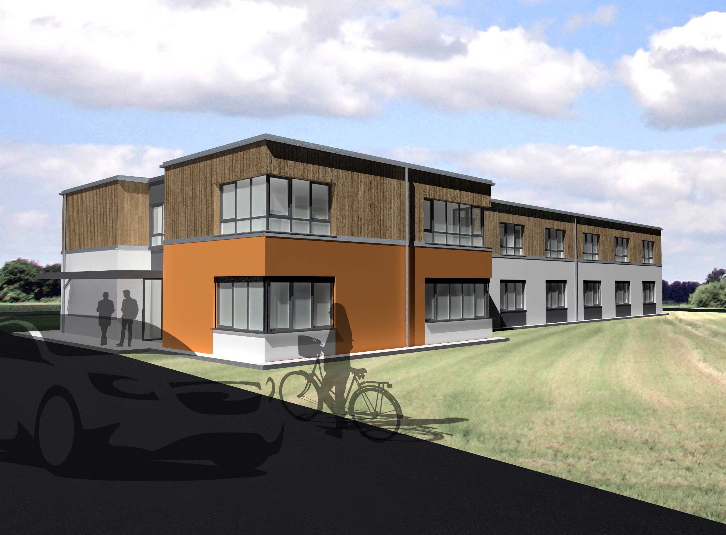Der Wasser- und Bodenverband „Oberland Calau“ beabsichtigt, das bestehende, eingeschossige Betriebs- und Verwaltungsgebäude (Baujahr 2010) um eine weitere Etage zu erweitern, da der Bedarf an Verwaltungs- und gewerblichen Flächen gestiegen ist. Im Erdgeschoss befinden sich Verwaltungseinheiten, einschließlich Pausenraum, Sanitäranlagen, Archiv sowie Haustechnikräume. Außerdem gibt es zwei Büros und eine Umkleide mit Sanitärbereich für den gewerblichen Bereich. Im Obergeschoss sind mehrere Konferenzräume mit zugehörigen Sanitäranlagen, Pausenräume, zwei Büros sowie eine weitere Umkleide mit Sanitärbereich vorgesehen. Die Aufstockung erfolgt bei laufender Nutzung des Erdgeschosses und wird als Holzbau mit einem hohen Maß an Vorfertigung realisiert.