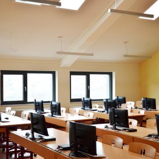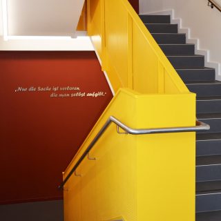 Klassenräume und Flure wurden als eine brandschutztechnische Nutzungseinheit geplant, um alle Bereiche frei möblieren und als Pausen- und Garderobenbereich nutzen zu können.