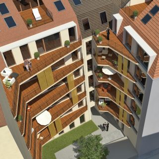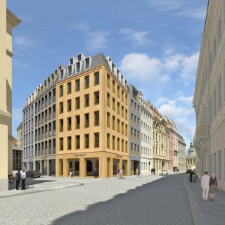 Das »Frieseneck am Neumarkt« zählt zu den erstklassigen Adressen in Dresden, nahe der Frauenkirche. Entlang der Landhausstraße und Friesengasse entsteht ein Wohn- und Geschäftshaus mit sechs Vollgeschossen. Die Fassade des »Friesenecks« orientiert sich am Aussehen der barocken Bürgerhäuser von einst. Die Architektur spiegelt dies in einer modernen Interpretation. Zudem stellt die Leitfassade an der Landhausstraße eine originalgetreue Rekonstruktion aus dem Jahre 1780 mit einem historischen Eingangsportal dar. Innen prägen eine elegante Formensprache und die Verarbeitung hochwertiger Materialien die Substanz der Immobilie. Zusammen mit modernsten baulichen Standards, wie einem Aufzug über alle Etagen, einer barrierefreundlichen Ausstattung und einer Unterkellerung samt Tiefgarage garantiert das »Frieseneck am Neumarkt« ein Lebensgefühl der ganz besonderen Art. (Quelle & Visualisierung: arte I 4D – Andreas Hummel)