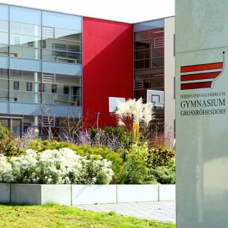 Der Schulstandort Großröhrsdorf, bestehend aus mehreren Einzelgebäuden verschiedener Zeitepochen, wird durch den Erweiterungsneubau für das 3-zügige Ferdinand-Sauerbruch-Gymnasium neu strukturiert. Dieser Neubau ist funktionell und baulich mit dem unter Denkmalschutz stehenden Schulgebäude verbunden. Das Kernstück des Schulstandortes bildet die offene und modern angelegte Cafeteria, als Bindeglied für Mittelschule und Gymnasium. Neue helle Klassenzimmer bieten optimale Lernbedingungen. Lebhafte Farben und moderne Materialien wecken Gefühle, beeinflussen Verhalten und erzeugen Stimmungen. Besonders attraktiv ist die Aula mit Zugang zur Dachterrasse der Cafeteria. Diese Aula ist technisch und baulich so angelegt, dass sie ein Kommunikationszentrum für die Öffentlichkeit der Stadt Großröhrsdorf werden kann.