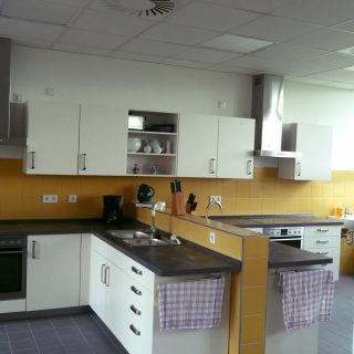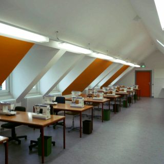 Nach der Entkernung des Ostflügels und der Sanierung des Daches konnten moderne Fachkabinette (Lehrküche, textiles Gestalten) eingerichtet werden. Neue leuchtende Farben im gesamten Schulhaus schaffen eine gute Grundlage zum Lernen und lassen einen Ausblick auf den 2. Bauabschnitt erahnen.