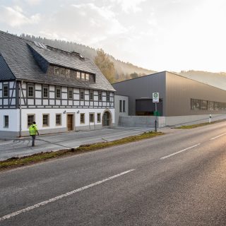 Für die Erweiterung der Produktion erfolgte am Standort der Neubau einer Halle in Stahlrahmenbauweise mit Sandwichpaneelen. Das Pultdach wurde aus ökologischen Gründen als Gründach ausgebildet. Über einen eingerückten Baukörper erfolgt die Verbindung mit dem Bestandsgebäude „Huthaus“, welches unter Denkmalschutz steht. Mit der denkmalgerechten Sanierung des in den Jahren 1785-1864 als Hut- und Bethaus genutzte Bestandsgebäude wurde ein wichtiges Zeugnis des Bergbaus der Region bewahrt, stellte es doch das zentrale Verwaltungsgebäude eines Bergwerks dar und war gleichzeitig Materiallager, Gezähekammer, Werkstatt und Wohnung sowie Bethaus in einem.